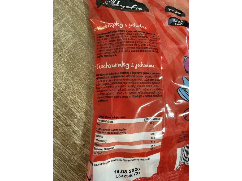 Kukuřičné křupky v jogurtovém kabátku s jahodou – křupněte si a nechte se unášet sladkou chutí léta.